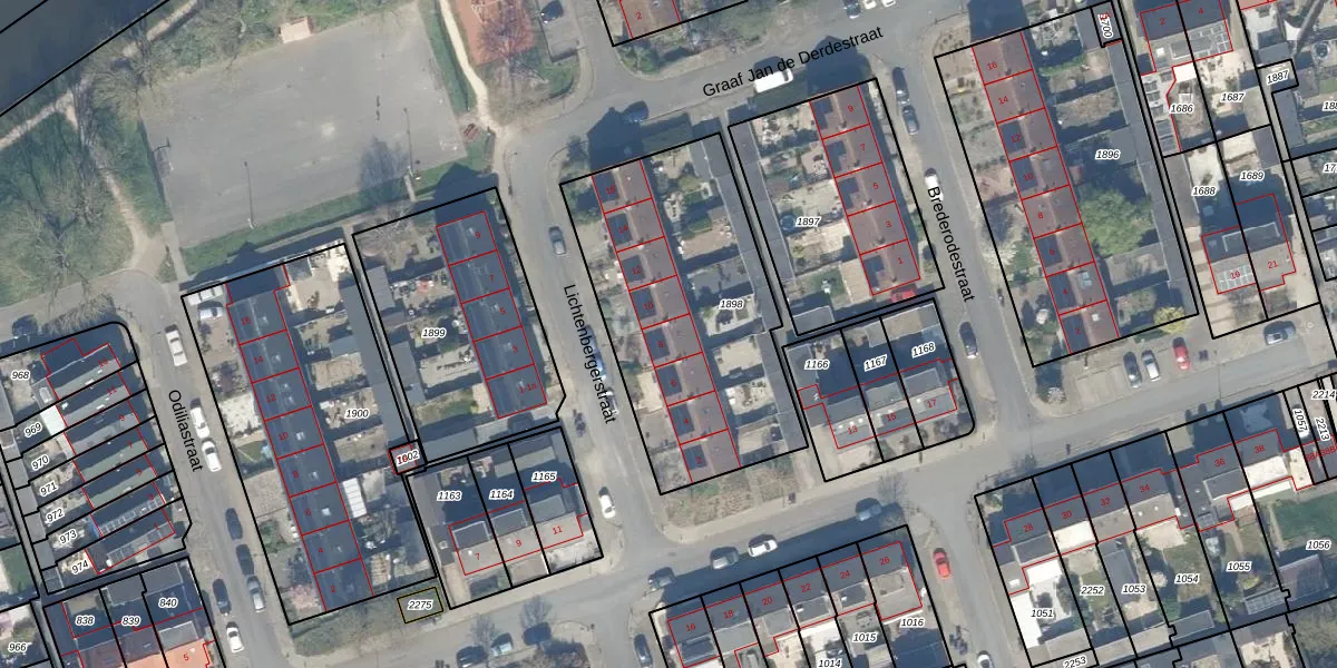 Het perceel waarop Lichtenbergerstraat 8 staat heeft een oppervlakte van 1195 m². Dit is een zeer groot perceel. De perceeloppervlakte wordt geregistreerd door het Kadaster. Gedetailleerde informatie over de maten van dit perceel kunt u vinden in het rapport Kadastrale kaart met maatvoering van Lichtenbergerstraat 8.