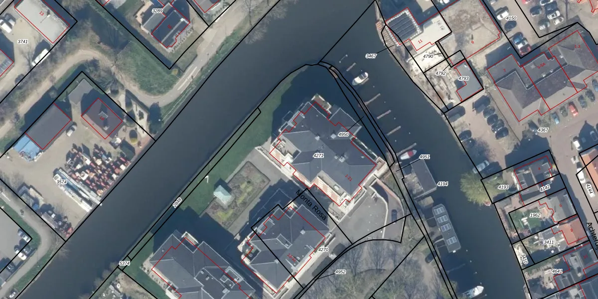 Het perceel waarop Monta Rosa 16 staat heeft een oppervlakte van 4000 m². Dit is een zeer groot perceel. De perceeloppervlakte wordt geregistreerd door het Kadaster. Gedetailleerde informatie over de maten van dit perceel kunt u vinden in het rapport Kadastrale kaart met maatvoering van Monta Rosa 16.