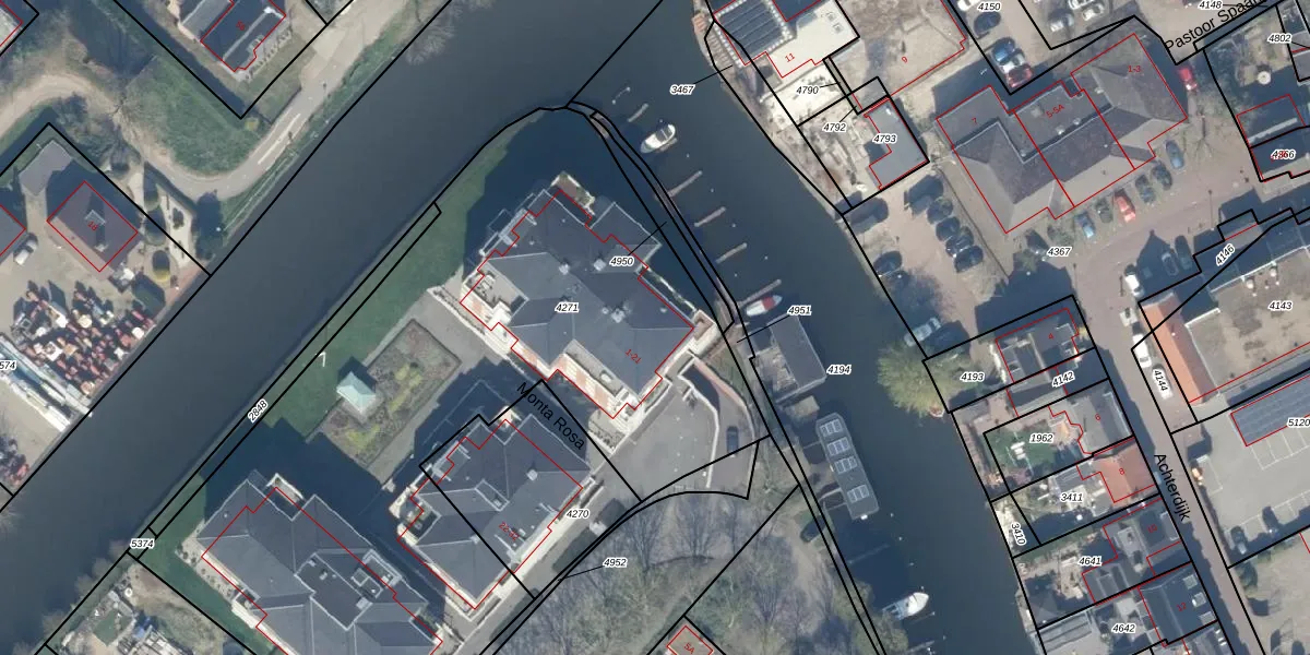 Het perceel waarop Monta Rosa 19 staat heeft een oppervlakte van 4000 m². Dit is een zeer groot perceel. De perceeloppervlakte wordt geregistreerd door het Kadaster. Gedetailleerde informatie over de maten van dit perceel kunt u vinden in het rapport Kadastrale kaart met maatvoering van Monta Rosa 19.