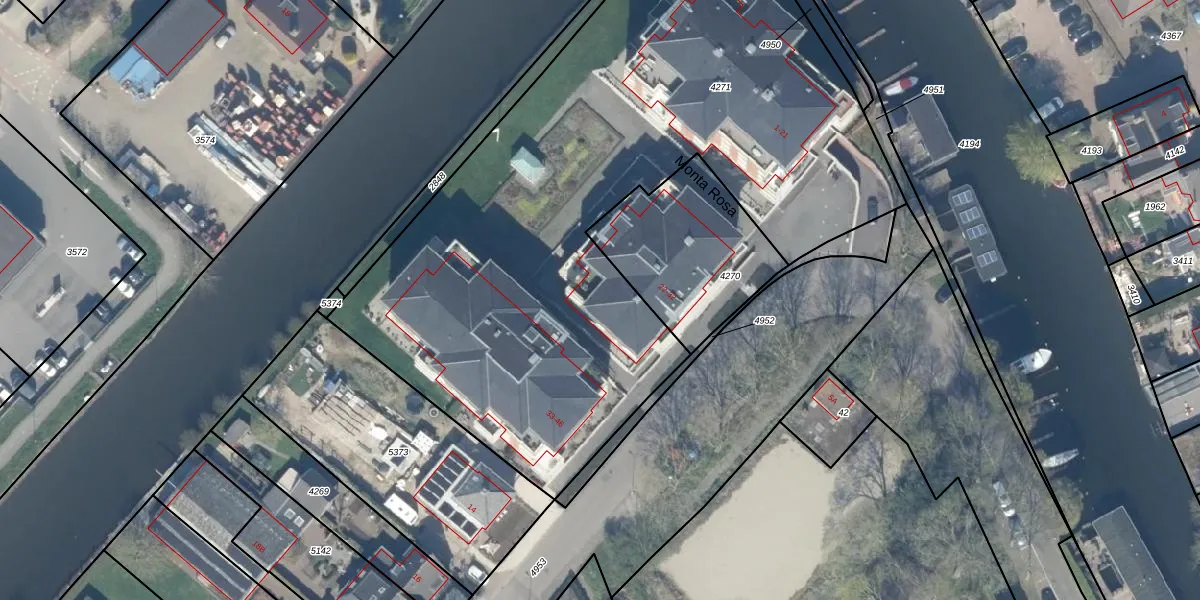 Het perceel waarop Monta Rosa 22 staat heeft een oppervlakte van 4000 m². Dit is een zeer groot perceel. De perceeloppervlakte wordt geregistreerd door het Kadaster. Gedetailleerde informatie over de maten van dit perceel kunt u vinden in het rapport Kadastrale kaart met maatvoering van Monta Rosa 22.