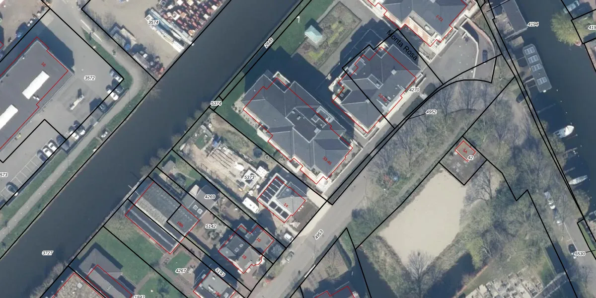 Het perceel waarop Monta Rosa 34 staat heeft een oppervlakte van 4000 m². Dit is een zeer groot perceel. De perceeloppervlakte wordt geregistreerd door het Kadaster. Gedetailleerde informatie over de maten van dit perceel kunt u vinden in het rapport Kadastrale kaart met maatvoering van Monta Rosa 34.