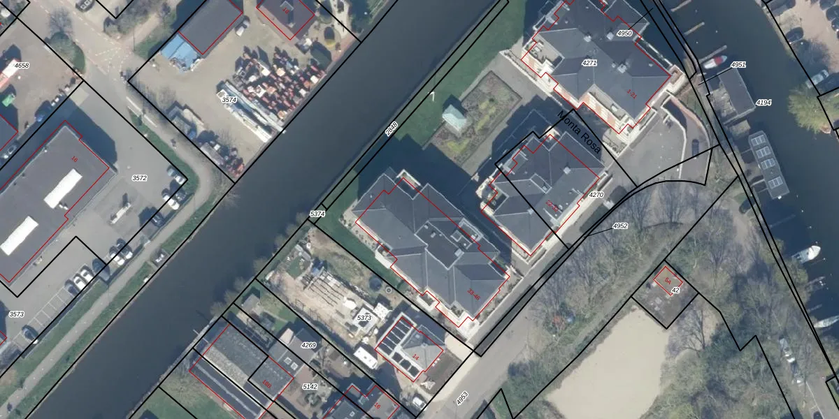 Het perceel waarop Monta Rosa 44 staat heeft een oppervlakte van 4000 m². Dit is een zeer groot perceel. De perceeloppervlakte wordt geregistreerd door het Kadaster. Gedetailleerde informatie over de maten van dit perceel kunt u vinden in het rapport Kadastrale kaart met maatvoering van Monta Rosa 44.