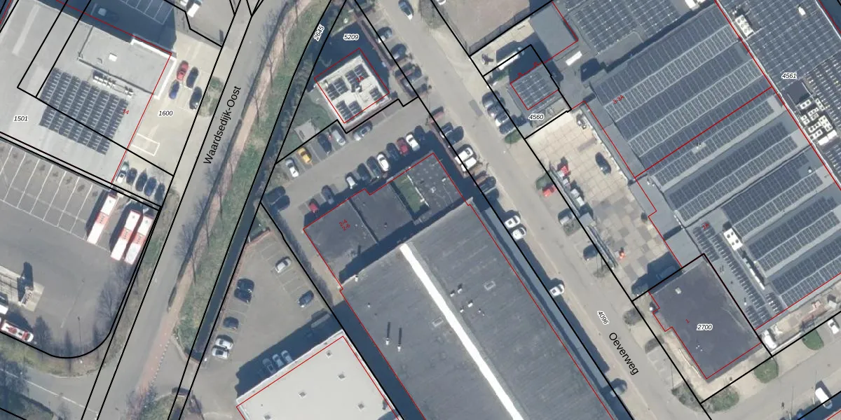 Het perceel waarop Oeverweg 2 staat heeft een oppervlakte van 1,1 ha. Dit is een zeer groot perceel. De perceeloppervlakte wordt geregistreerd door het Kadaster. Gedetailleerde informatie over de maten van dit perceel kunt u vinden in het rapport Kadastrale kaart met maatvoering van Oeverweg 2.