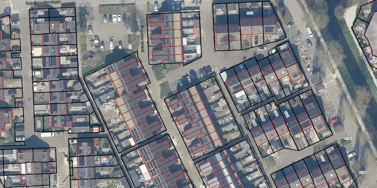 Het perceel waarop Poorterstraat 13 staat heeft een oppervlakte van 1051 m². Dit is een zeer groot perceel. De perceeloppervlakte wordt geregistreerd door het Kadaster. Gedetailleerde informatie over de maten van dit perceel kunt u vinden in het rapport Kadastrale kaart met maatvoering van Poorterstraat 13.