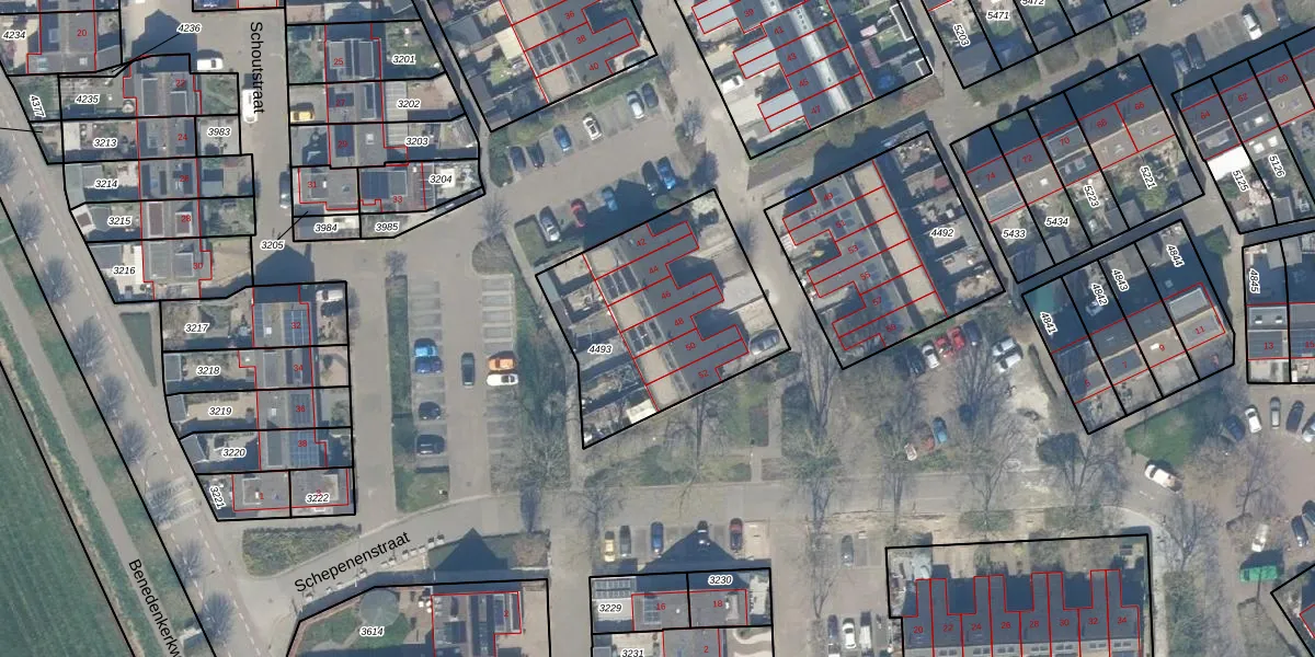 Het perceel waarop Poorterstraat 48 staat heeft een oppervlakte van 836 m². Dit is een groot perceel. De perceeloppervlakte wordt geregistreerd door het Kadaster. Gedetailleerde informatie over de maten van dit perceel kunt u vinden in het rapport Kadastrale kaart met maatvoering van Poorterstraat 48.