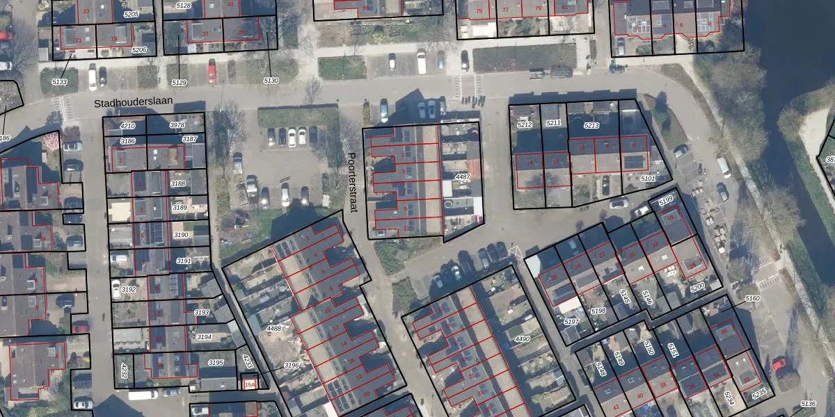 Het perceel waarop Poorterstraat 9 staat heeft een oppervlakte van 752 m². Dit is een groot perceel. De perceeloppervlakte wordt geregistreerd door het Kadaster. Gedetailleerde informatie over de maten van dit perceel kunt u vinden in het rapport Kadastrale kaart met maatvoering van Poorterstraat 9.