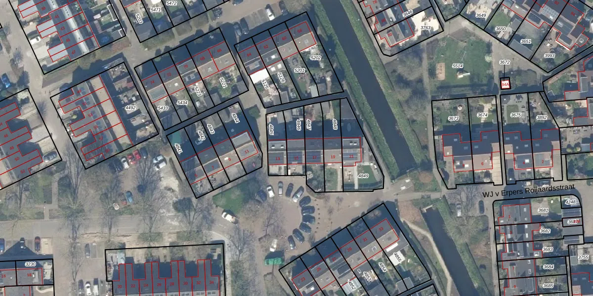 Gebruik de zoekbalk of klik op een perceel voor informatie over de adressen binnen dit perceel.