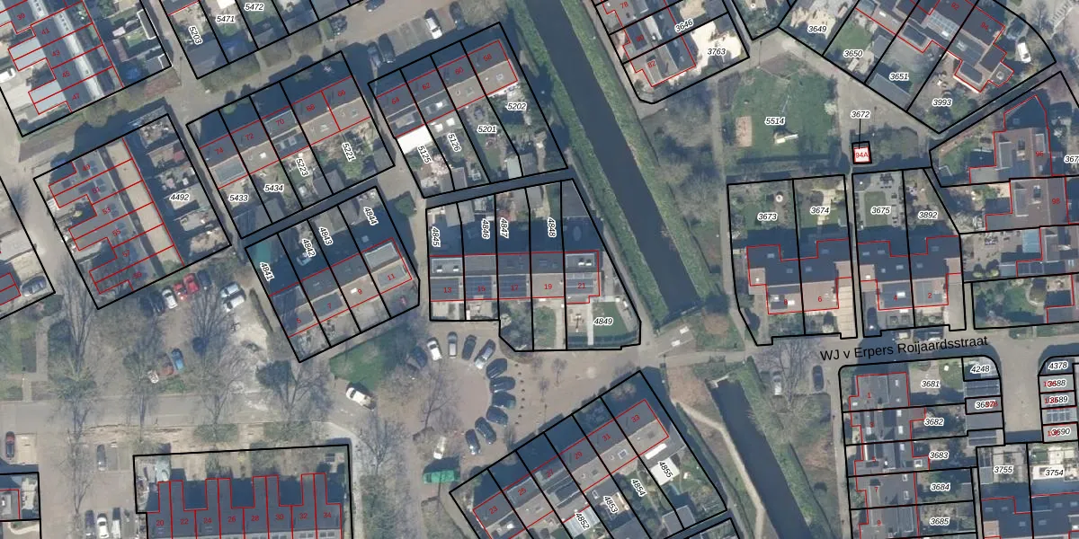 Gebruik de zoekbalk of klik op een perceel voor informatie over de adressen binnen dit perceel.