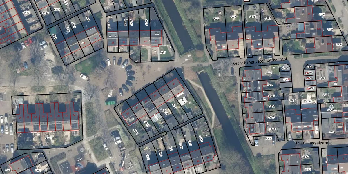 Gebruik de zoekbalk of klik op een perceel voor informatie over de adressen binnen dit perceel.