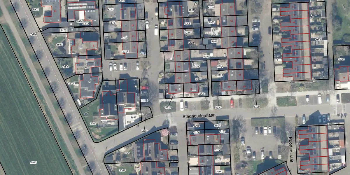 Gebruik de zoekbalk of klik op een perceel voor informatie over de adressen binnen dit perceel.