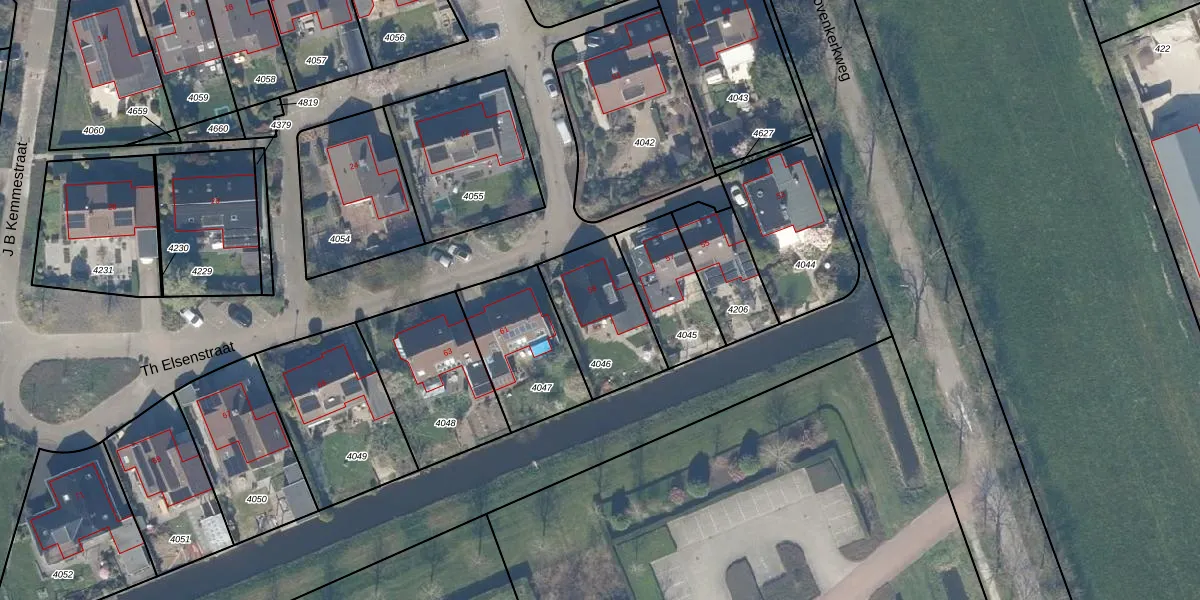 Het perceel waarop Th Elsenstraat 59 staat heeft een oppervlakte van 331 m². Dit is een groot perceel. De perceeloppervlakte wordt geregistreerd door het Kadaster. Gedetailleerde informatie over de maten van dit perceel kunt u vinden in het rapport Kadastrale kaart met maatvoering van Th Elsenstraat 59.