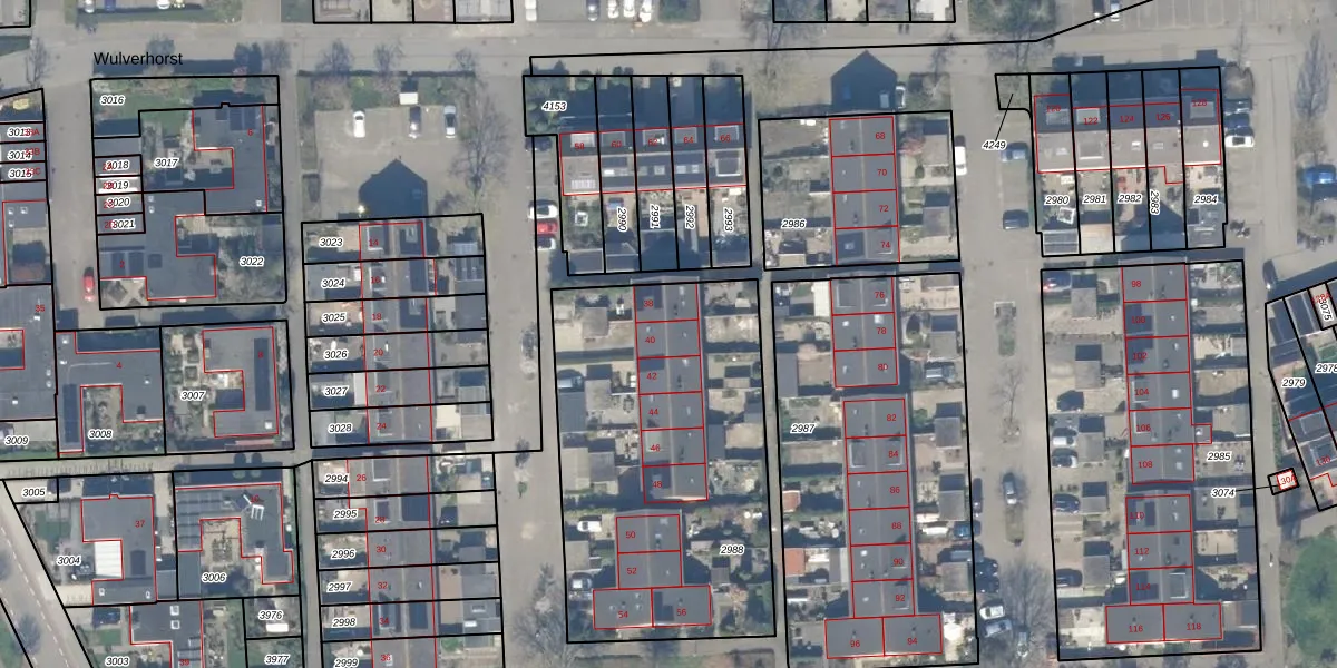 Het perceel waarop Wulverhorst 40 staat heeft een oppervlakte van 1636 m². Dit is een zeer groot perceel. De perceeloppervlakte wordt geregistreerd door het Kadaster. Gedetailleerde informatie over de maten van dit perceel kunt u vinden in het rapport Kadastrale kaart met maatvoering van Wulverhorst 40.