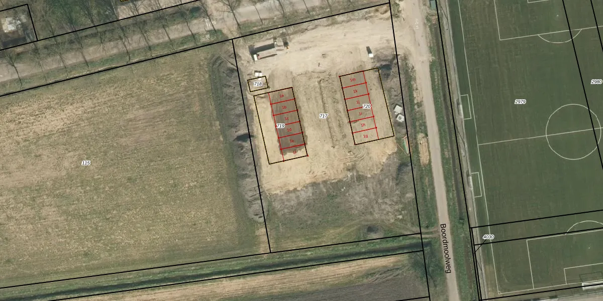 Boordmoolweg 1-f is gelegen op kadastraal perceel MFT02G719. Deze kadastrale aanduiding is uniek en wordt gebruikt door het Kadaster om eigendomsrechten en andere zakelijke rechten vast te leggen. Het perceel maakt onderdeel uit van de kadastrale gemeente Montfort.