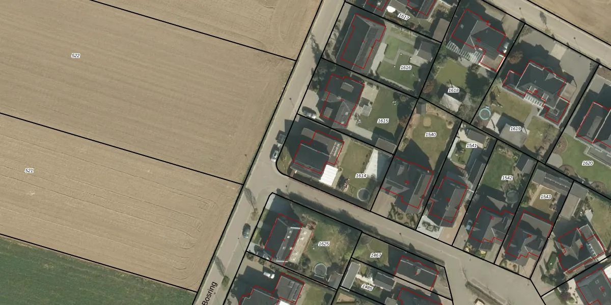 Het perceel waarop Bosring 7 staat heeft een oppervlakte van 690 m². Dit is een groot perceel. De perceeloppervlakte wordt geregistreerd door het Kadaster. Gedetailleerde informatie over de maten van dit perceel kunt u vinden in het rapport Kadastrale kaart met maatvoering van Bosring 7.