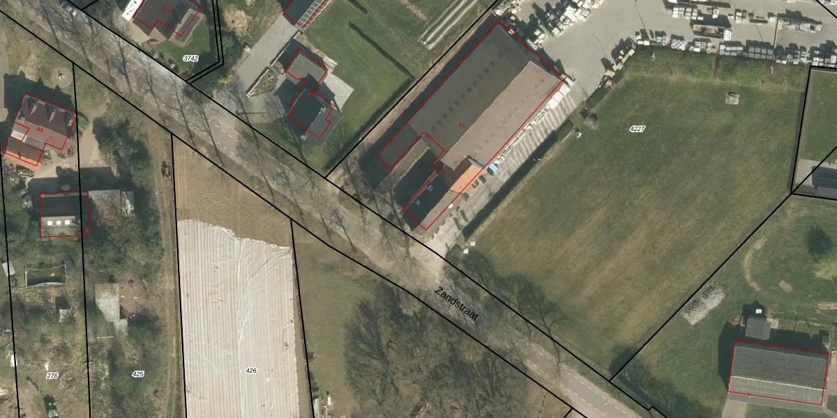 Het perceel waarop Zandstraat 61 staat heeft een oppervlakte van 8317 m². Dit is een zeer groot perceel. De perceeloppervlakte wordt geregistreerd door het Kadaster. Gedetailleerde informatie over de maten van dit perceel kunt u vinden in het rapport Kadastrale kaart met maatvoering van Zandstraat 61.