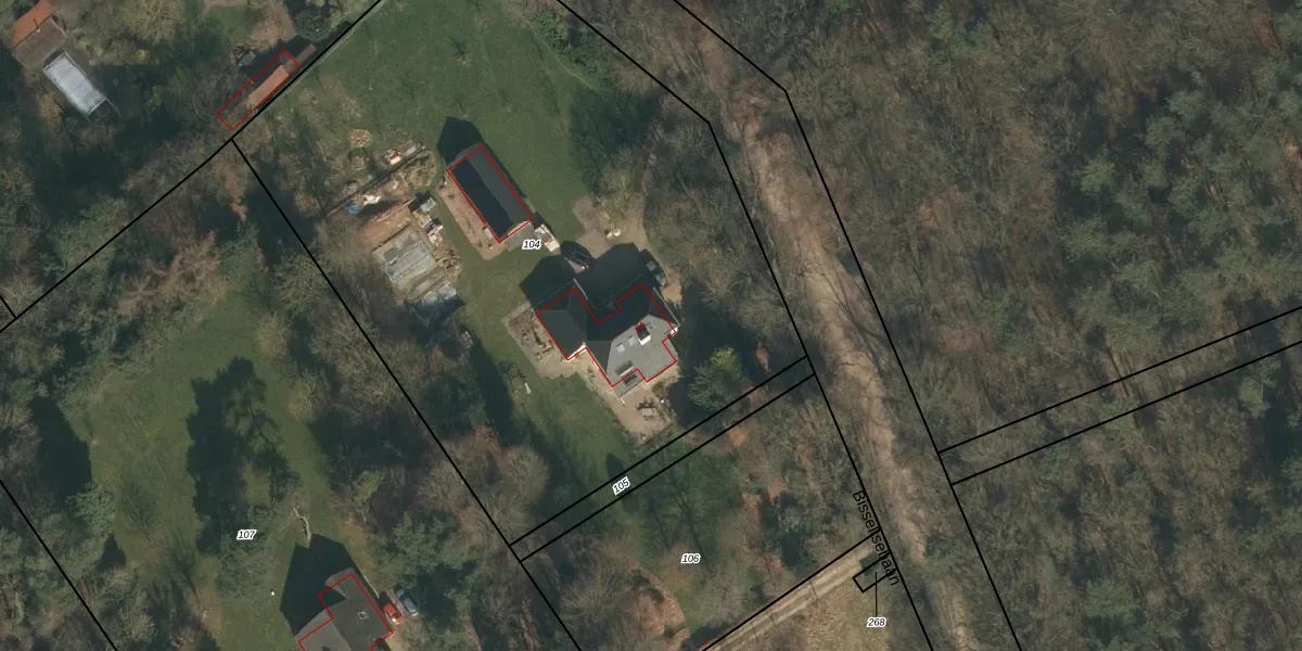 Het perceel waarop Bisseltsebaan 34 staat heeft een oppervlakte van 4525 m². Dit is een zeer groot perceel. De perceeloppervlakte wordt geregistreerd door het Kadaster. Gedetailleerde informatie over de maten van dit perceel kunt u vinden in het rapport Kadastrale kaart met maatvoering van Bisseltsebaan 34.