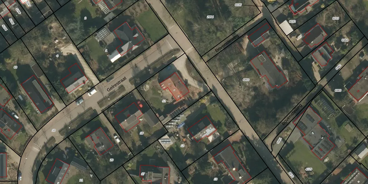 Het perceel waarop Bovensteweg 21 staat heeft een oppervlakte van 820 m². Dit is een groot perceel. De perceeloppervlakte wordt geregistreerd door het Kadaster. Gedetailleerde informatie over de maten van dit perceel kunt u vinden in het rapport Kadastrale kaart met maatvoering van Bovensteweg 21.