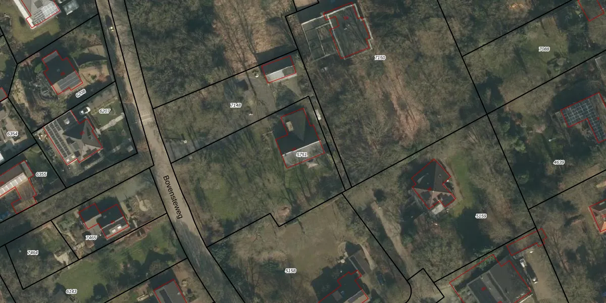 Het perceel waarop Bovensteweg 42 staat heeft een oppervlakte van 1610 m². Dit is een zeer groot perceel. De perceeloppervlakte wordt geregistreerd door het Kadaster. Gedetailleerde informatie over de maten van dit perceel kunt u vinden in het rapport Kadastrale kaart met maatvoering van Bovensteweg 42.