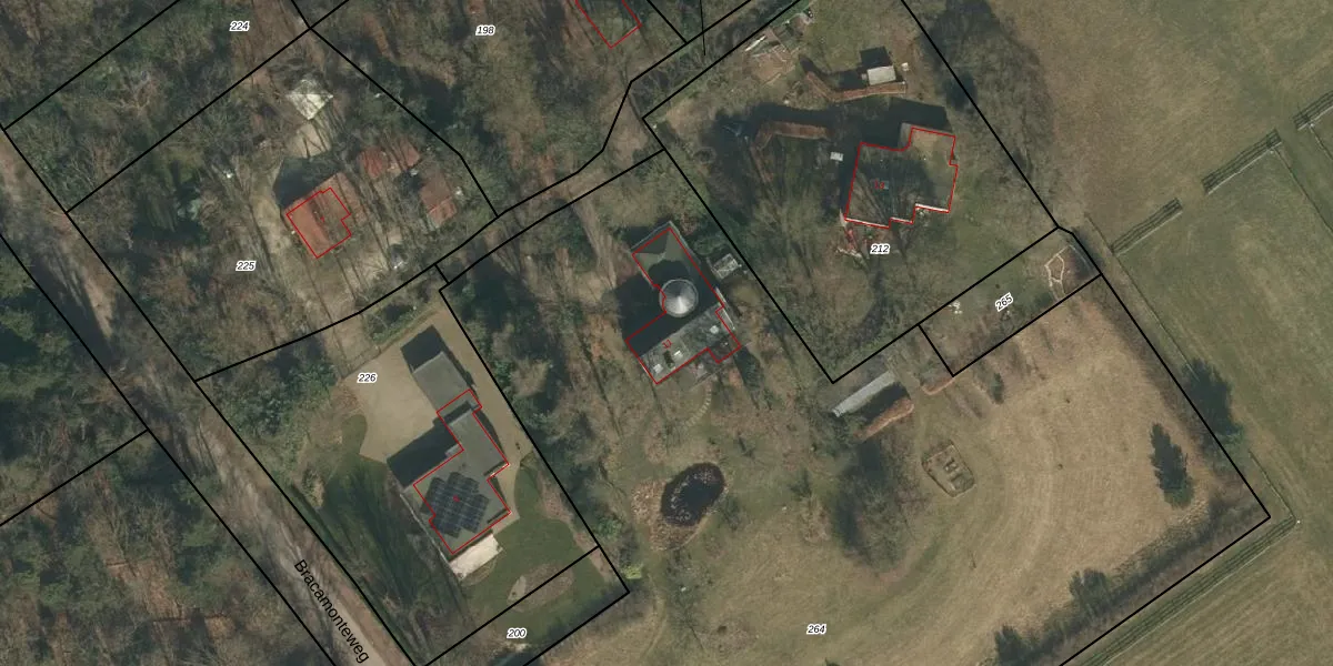 Het perceel waarop Bracamonteweg 11 staat heeft een oppervlakte van 7800 m². Dit is een zeer groot perceel. De perceeloppervlakte wordt geregistreerd door het Kadaster. Gedetailleerde informatie over de maten van dit perceel kunt u vinden in het rapport Kadastrale kaart met maatvoering van Bracamonteweg 11.