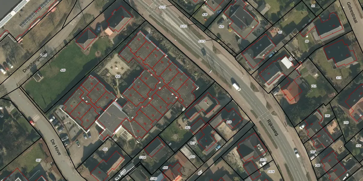 Het perceel waarop De Hove 72 staat heeft een oppervlakte van 3870 m². Dit is een zeer groot perceel. De perceeloppervlakte wordt geregistreerd door het Kadaster. Gedetailleerde informatie over de maten van dit perceel kunt u vinden in het rapport Kadastrale kaart met maatvoering van De Hove 72.