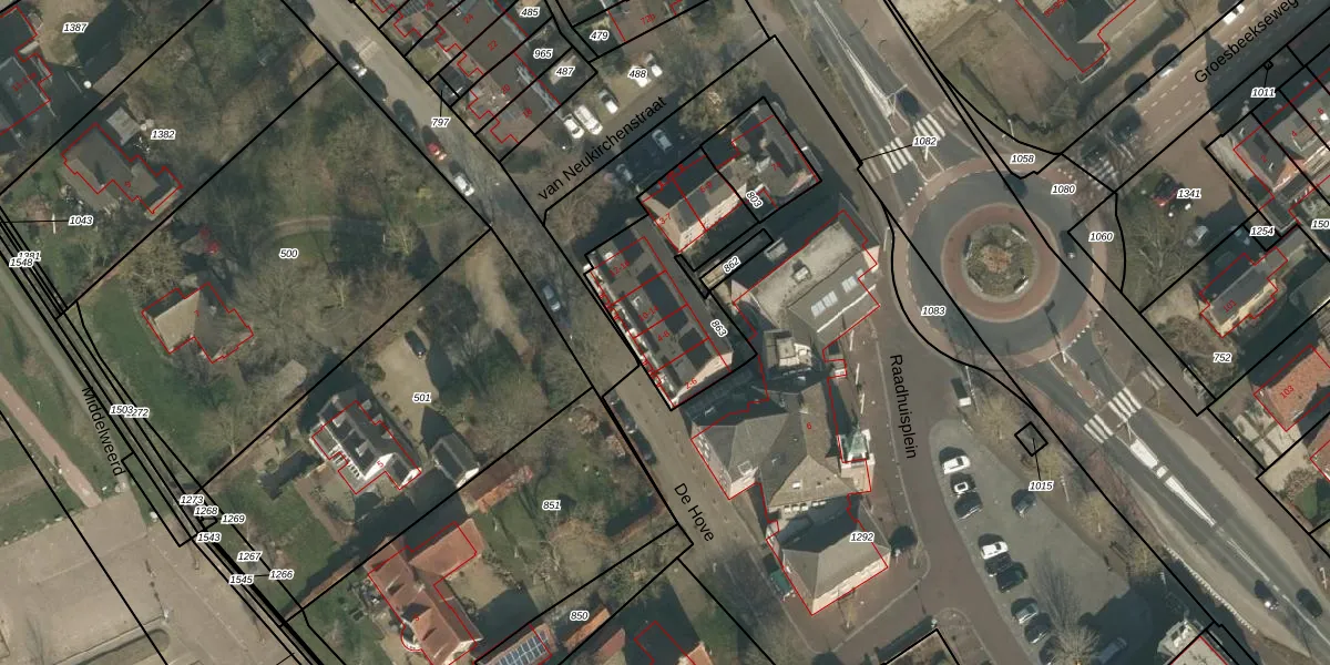 Het perceel waarop De Hove 8 staat heeft een oppervlakte van 540 m². Dit is een groot perceel. De perceeloppervlakte wordt geregistreerd door het Kadaster. Gedetailleerde informatie over de maten van dit perceel kunt u vinden in het rapport Kadastrale kaart met maatvoering van De Hove 8.