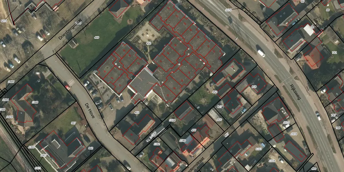 Het perceel waarop De Hove 80 staat heeft een oppervlakte van 3870 m². Dit is een zeer groot perceel. De perceeloppervlakte wordt geregistreerd door het Kadaster. Gedetailleerde informatie over de maten van dit perceel kunt u vinden in het rapport Kadastrale kaart met maatvoering van De Hove 80.