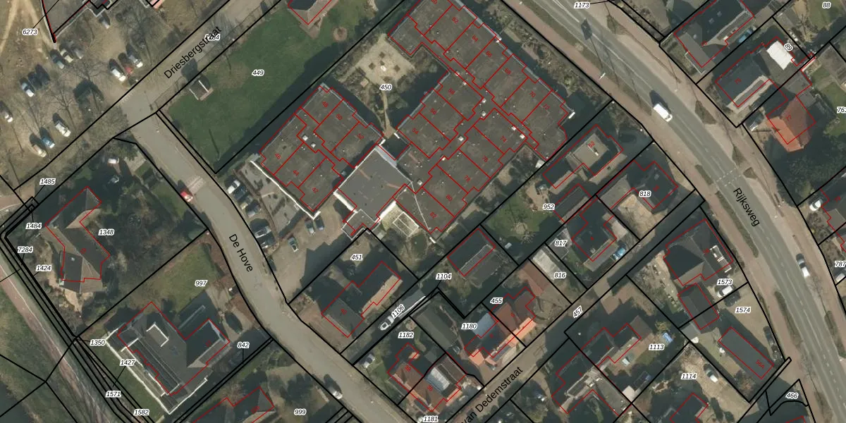 Het perceel waarop De Hove 82 staat heeft een oppervlakte van 3870 m². Dit is een zeer groot perceel. De perceeloppervlakte wordt geregistreerd door het Kadaster. Gedetailleerde informatie over de maten van dit perceel kunt u vinden in het rapport Kadastrale kaart met maatvoering van De Hove 82.