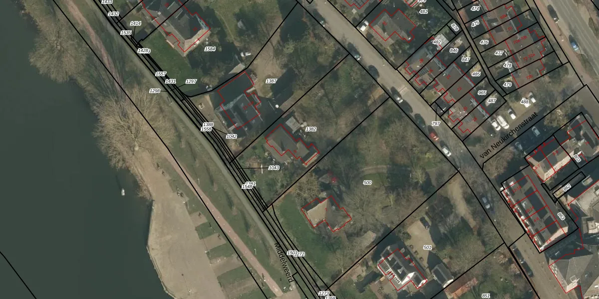 Het adres is gelegen op perceel 1382 in de sectie D en de kadastrale gemeente Mook en Middelaar. De kadastrale aanduiding is aldus MOO00-D-1382. Het perceel is 1055 m² groot. Dat is kleiner dan de gemiddelde perceeloppervlakte in Mook en Middelaar, dat op 3467,94 m² ligt. De grootste perceeloppervlakte in de kadastrale gemeente is 79,6 ha. De kleinste oppervlakte bedraagt 0 m². Dit is het enige adres dat aanwezig is op het perceel. De huidige grenzen van het perceel zijn digitaal in de Basisregistratie Kadaster (BRK) geregistreerd op 23-11-2023.