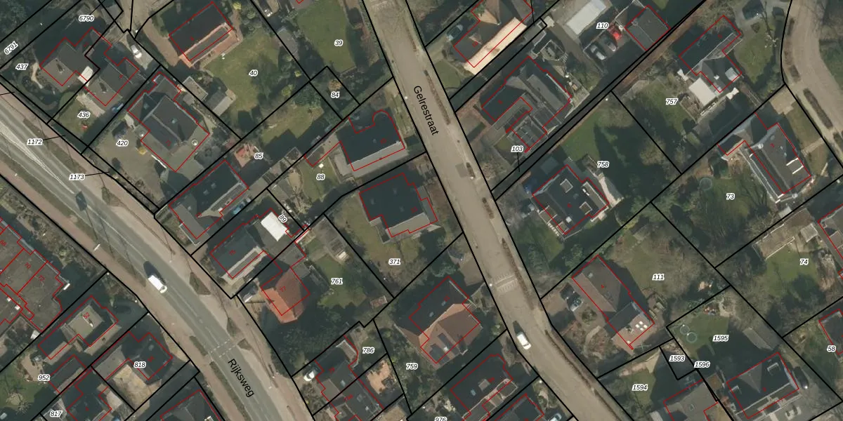 Gelrestraat 13 is gelegen op kadastraal perceel MOO00D371. Deze kadastrale aanduiding is uniek en wordt gebruikt door het Kadaster om eigendomsrechten en andere zakelijke rechten vast te leggen. Het perceel maakt onderdeel uit van de kadastrale gemeente Mook en Middelaar.