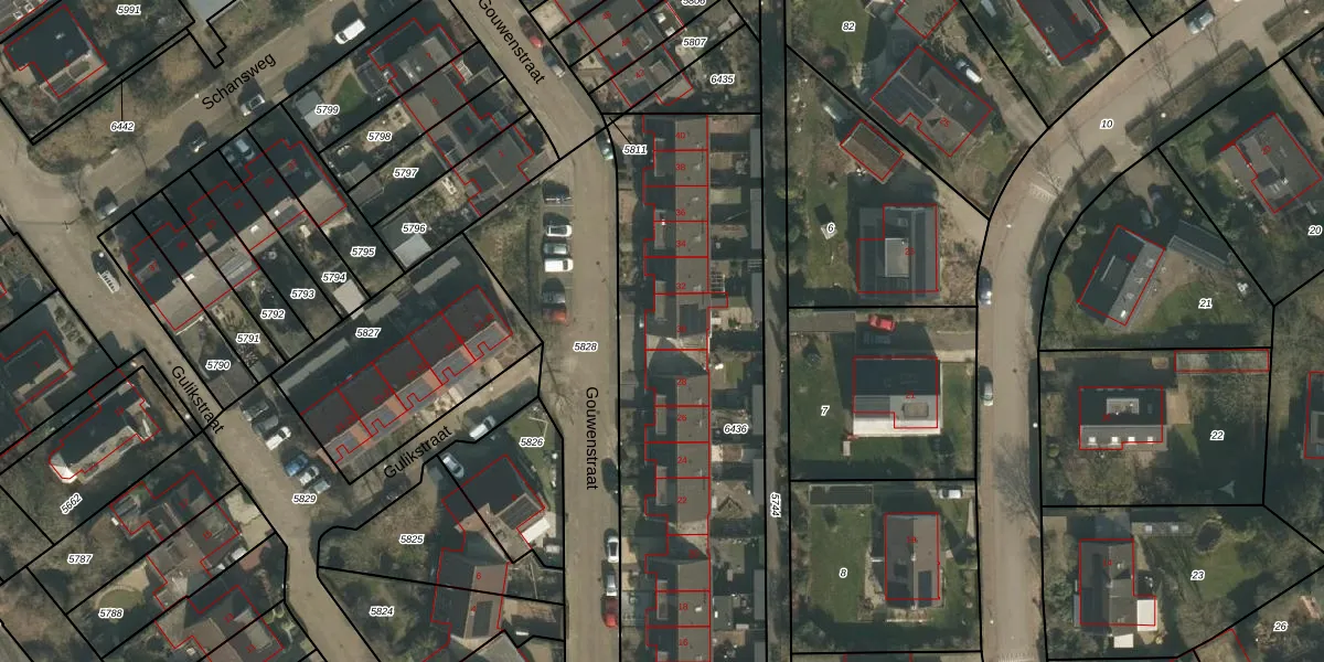 Gouwenstraat 30 is gelegen op kadastraal perceel MOO00A6436. Deze kadastrale aanduiding is uniek en wordt gebruikt door het Kadaster om eigendomsrechten en andere zakelijke rechten vast te leggen. Het perceel maakt onderdeel uit van de kadastrale gemeente Mook en Middelaar.