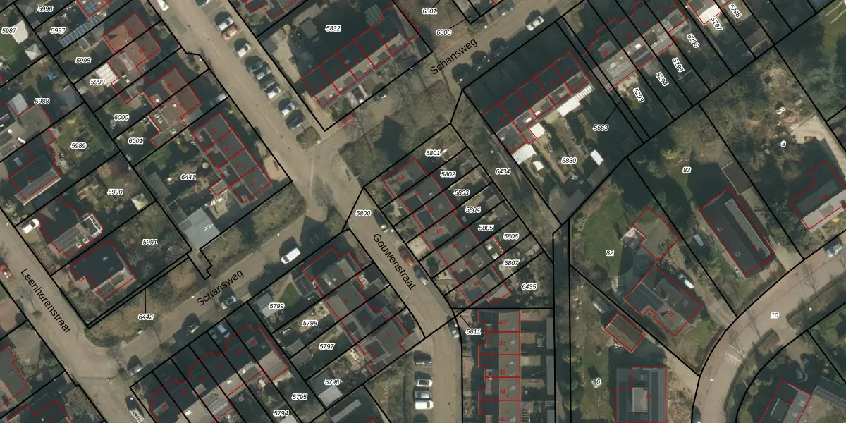Gouwenstraat 50 is gelegen op kadastraal perceel MOO00A5803. Deze kadastrale aanduiding is uniek en wordt gebruikt door het Kadaster om eigendomsrechten en andere zakelijke rechten vast te leggen. Het perceel maakt onderdeel uit van de kadastrale gemeente Mook en Middelaar.