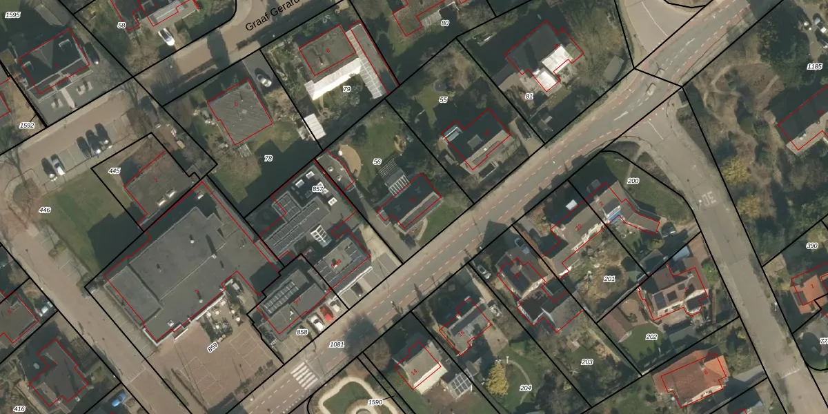 Het adres is gelegen op perceel 56 in de sectie D en de kadastrale gemeente Mook en Middelaar. De kadastrale aanduiding is aldus MOO00-D-56. De gemiddelde perceelgrootte in Mook en Middelaar is 3467,94 m². Dit perceel is kleiner: de perceeloppervlakte bedraagt 747 m². Het kleinste perceel in de kadastrale gemeente is 0 m² groot. De grootste perceeloppervlakte is 79,6 ha. Er zijn geen andere adressen aanwezig op het perceel. De laatste wijziging in het de Basisregistratie Kadaster (BRK) was op 01-05-2007.