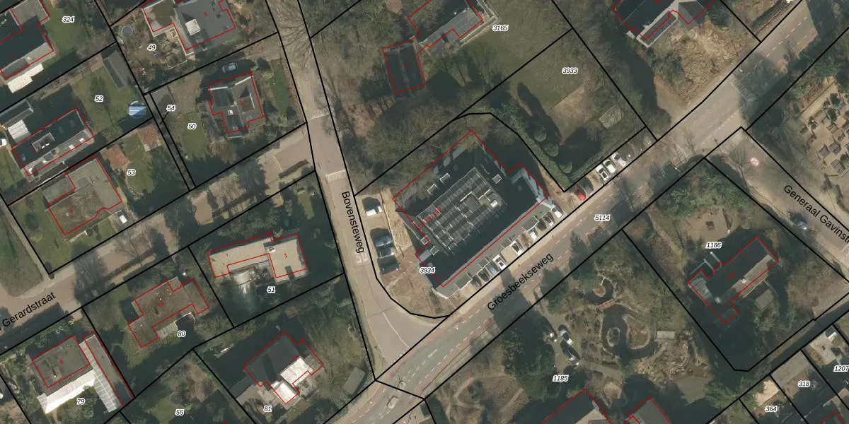 Het perceel waarop Groesbeekseweg 19-S staat heeft een oppervlakte van 1660 m². Dit is een zeer groot perceel. De perceeloppervlakte wordt geregistreerd door het Kadaster. Gedetailleerde informatie over de maten van dit perceel kunt u vinden in het rapport Kadastrale kaart met maatvoering van Groesbeekseweg 19-S.