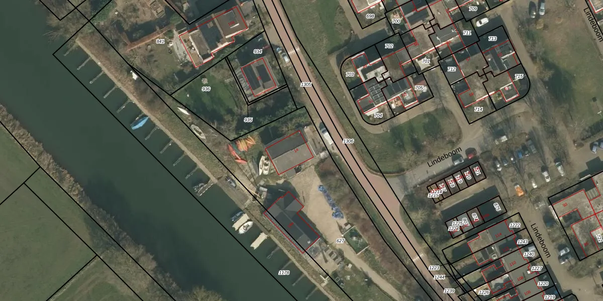 Het perceel waarop Kanaalweg 14 staat heeft een oppervlakte van 2440 m². Dit is een zeer groot perceel. De perceeloppervlakte wordt geregistreerd door het Kadaster. Gedetailleerde informatie over de maten van dit perceel kunt u vinden in het rapport Kadastrale kaart met maatvoering van Kanaalweg 14.