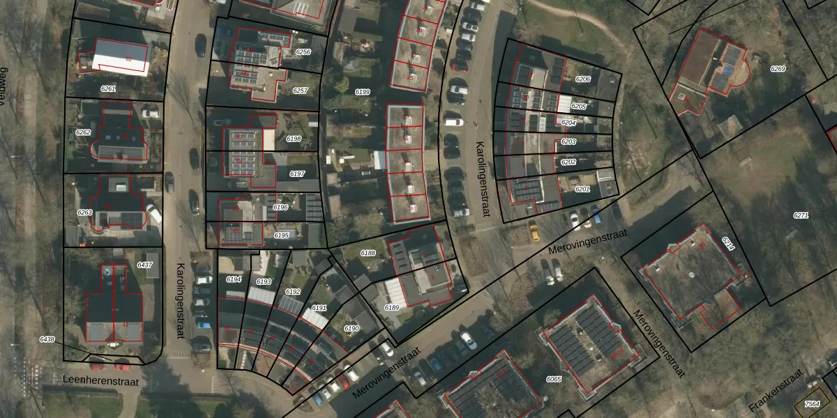 Het perceel waarop Karolingenstraat 5 staat heeft een oppervlakte van 1950 m². Dit is een zeer groot perceel. De perceeloppervlakte wordt geregistreerd door het Kadaster. Gedetailleerde informatie over de maten van dit perceel kunt u vinden in het rapport Kadastrale kaart met maatvoering van Karolingenstraat 5.