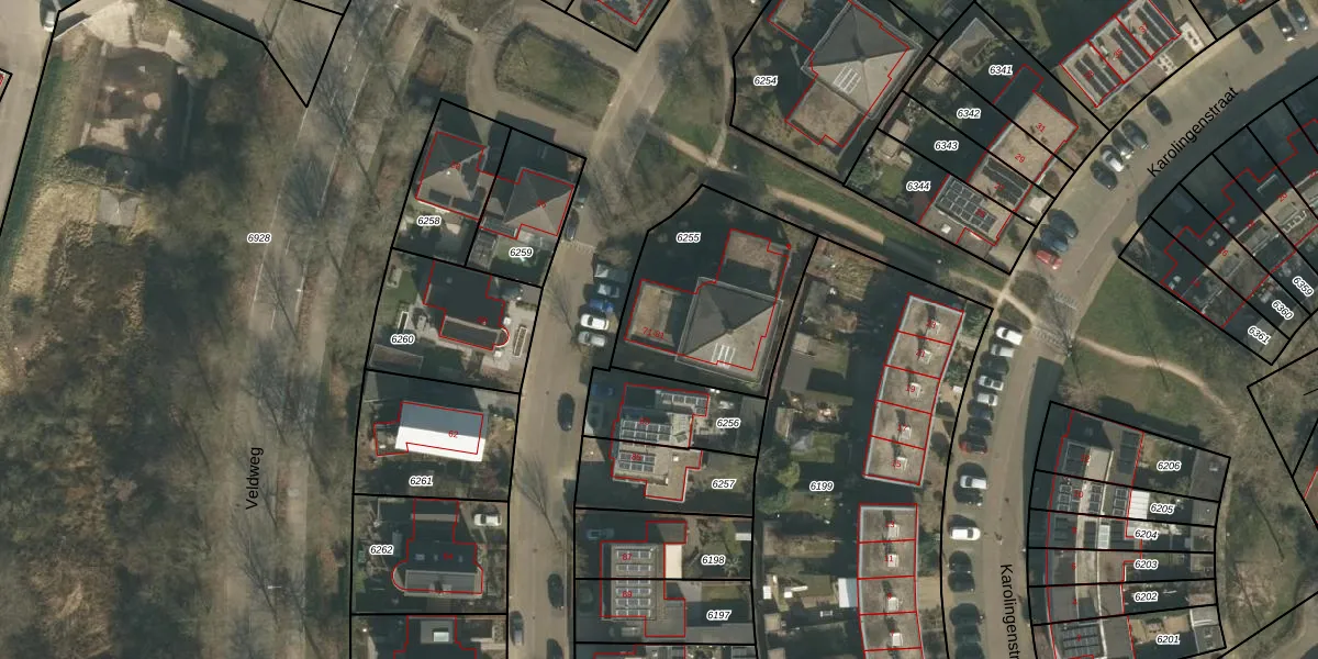 Het perceel waarop Karolingenstraat 75 staat heeft een oppervlakte van 664 m². Dit is een groot perceel. De perceeloppervlakte wordt geregistreerd door het Kadaster. Gedetailleerde informatie over de maten van dit perceel kunt u vinden in het rapport Kadastrale kaart met maatvoering van Karolingenstraat 75.
