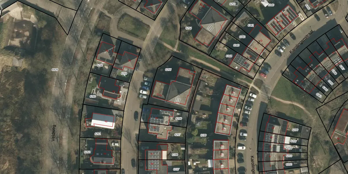 Het perceel waarop Karolingenstraat 77 staat heeft een oppervlakte van 664 m². Dit is een groot perceel. De perceeloppervlakte wordt geregistreerd door het Kadaster. Gedetailleerde informatie over de maten van dit perceel kunt u vinden in het rapport Kadastrale kaart met maatvoering van Karolingenstraat 77.