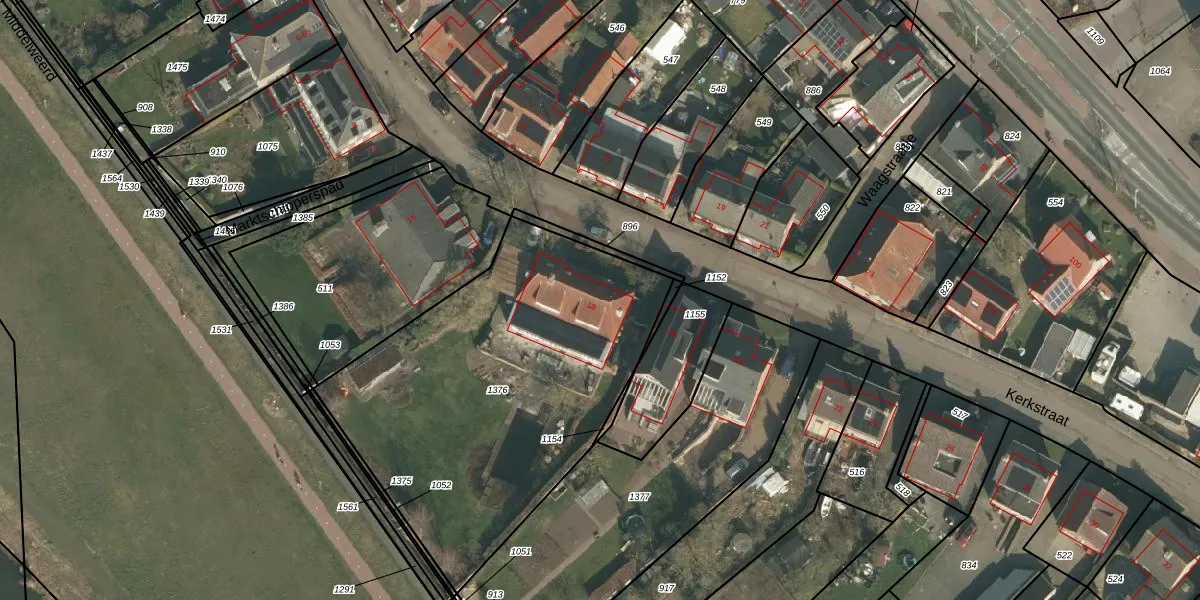 Het perceel waarop Kerkstraat 18 staat heeft een oppervlakte van 1868 m². Dit is een zeer groot perceel. De perceeloppervlakte wordt geregistreerd door het Kadaster. Gedetailleerde informatie over de maten van dit perceel kunt u vinden in het rapport Kadastrale kaart met maatvoering van Kerkstraat 18.