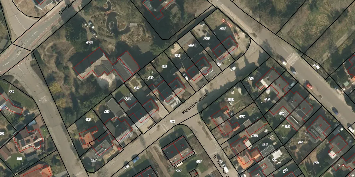 Kleineblokstraat 9 is gelegen op kadastraal perceel MOO00D365. Deze kadastrale aanduiding is uniek en wordt gebruikt door het Kadaster om eigendomsrechten en andere zakelijke rechten vast te leggen. Het perceel maakt onderdeel uit van de kadastrale gemeente Mook en Middelaar.