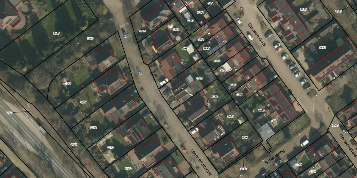 Gebruik de zoekbalk of klik op een perceel voor informatie over de adressen binnen dit perceel.