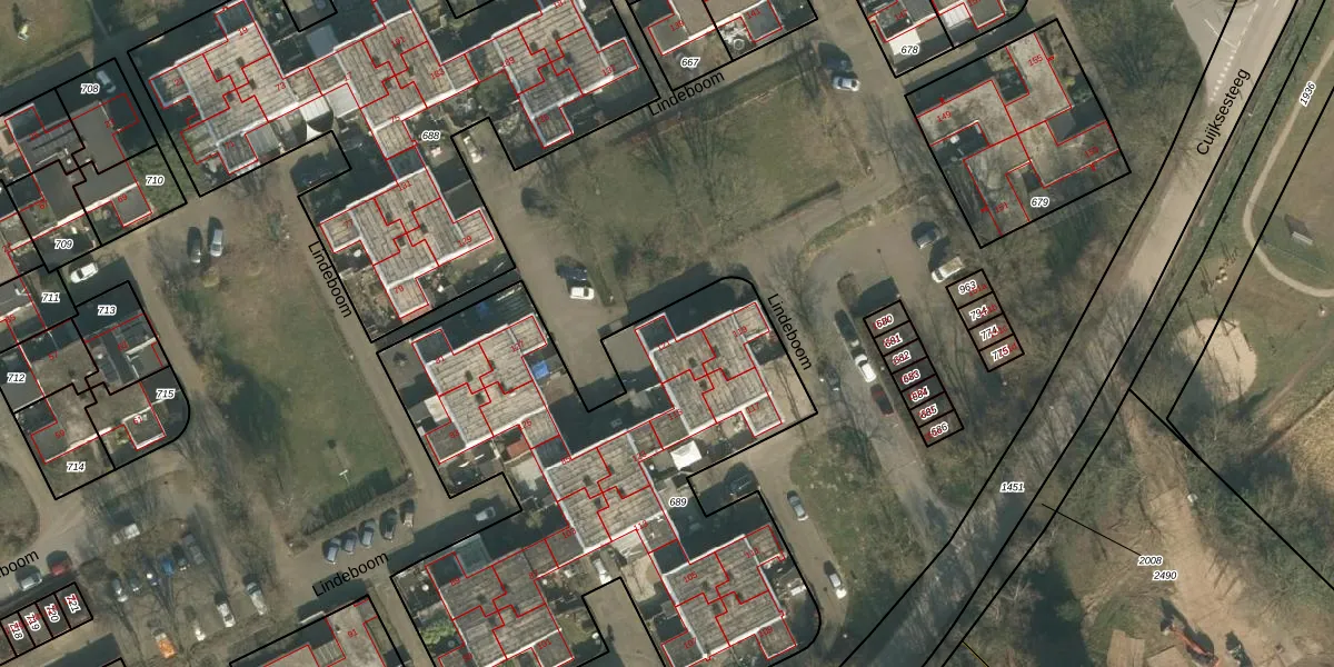 Het perceel waarop Lindeboom 121 staat heeft een oppervlakte van 2785 m². Dit is een zeer groot perceel. De perceeloppervlakte wordt geregistreerd door het Kadaster. Gedetailleerde informatie over de maten van dit perceel kunt u vinden in het rapport Kadastrale kaart met maatvoering van Lindeboom 121.