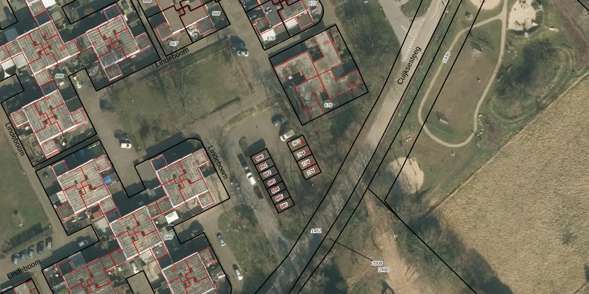 Gebruik de zoekbalk of klik op een perceel voor informatie over de adressen binnen dit perceel.