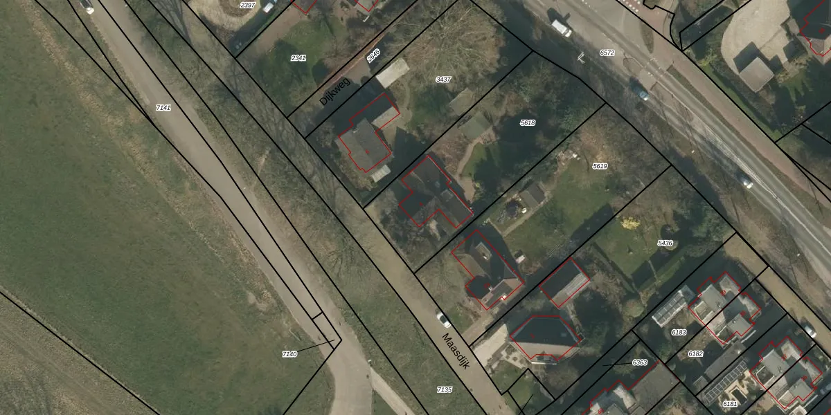 Het perceel waarop Maasdijk 4 staat heeft een oppervlakte van 1225 m². Dit is een zeer groot perceel. De perceeloppervlakte wordt geregistreerd door het Kadaster. Gedetailleerde informatie over de maten van dit perceel kunt u vinden in het rapport Kadastrale kaart met maatvoering van Maasdijk 4.