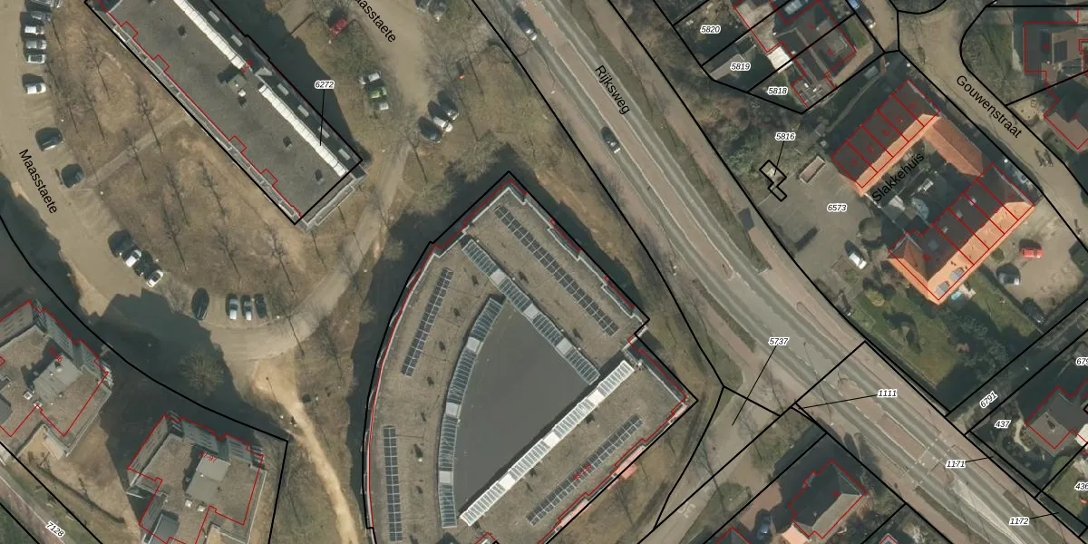 Het perceel waarop Maasstaete 123 staat heeft een oppervlakte van 2860 m². Dit is een zeer groot perceel. De perceeloppervlakte wordt geregistreerd door het Kadaster. Gedetailleerde informatie over de maten van dit perceel kunt u vinden in het rapport Kadastrale kaart met maatvoering van Maasstaete 123.