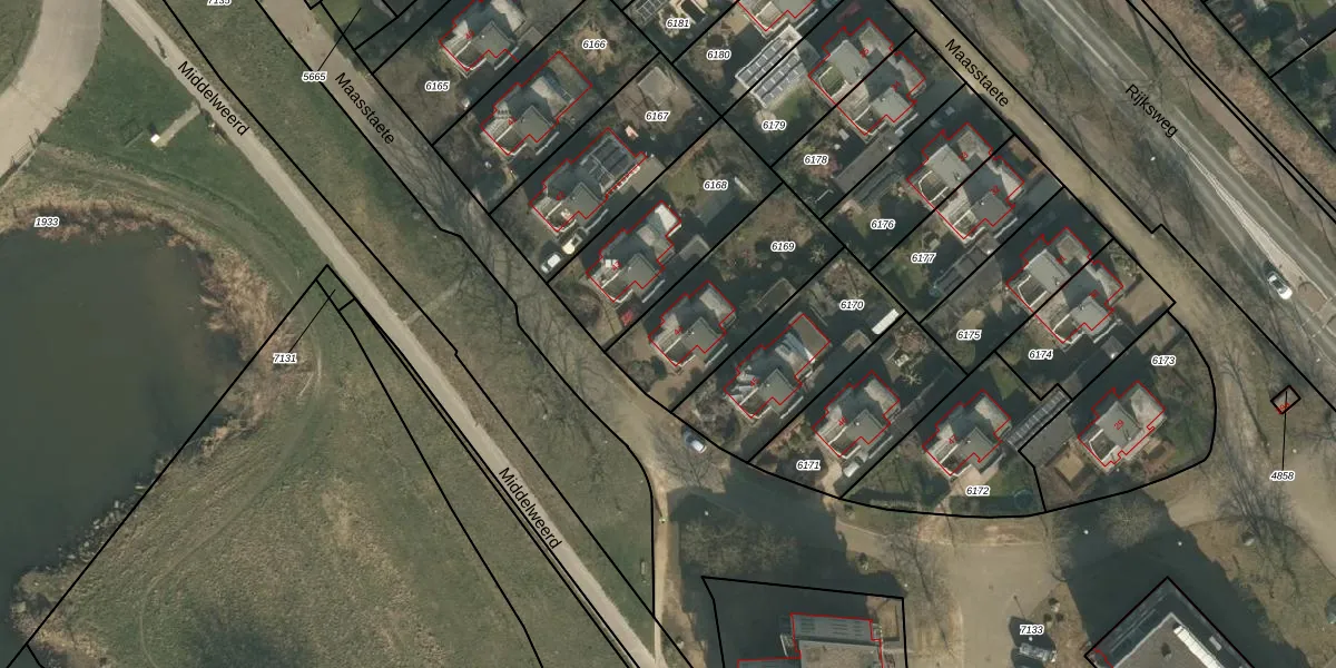 Het perceel waarop Maasstaete 44 staat heeft een oppervlakte van 492 m². Dit is een groot perceel. De perceeloppervlakte wordt geregistreerd door het Kadaster. Gedetailleerde informatie over de maten van dit perceel kunt u vinden in het rapport Kadastrale kaart met maatvoering van Maasstaete 44.