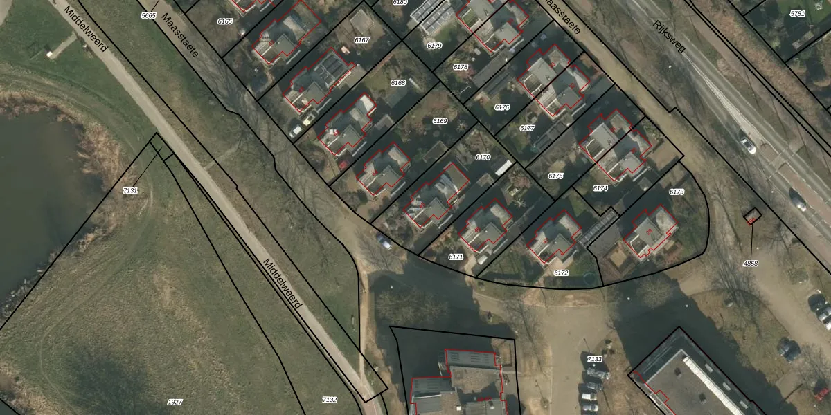 Maasstaete 45 is gelegen op kadastraal perceel MOO00A6170. Deze kadastrale aanduiding is uniek en wordt gebruikt door het Kadaster om eigendomsrechten en andere zakelijke rechten vast te leggen. Het perceel maakt onderdeel uit van de kadastrale gemeente Mook en Middelaar.