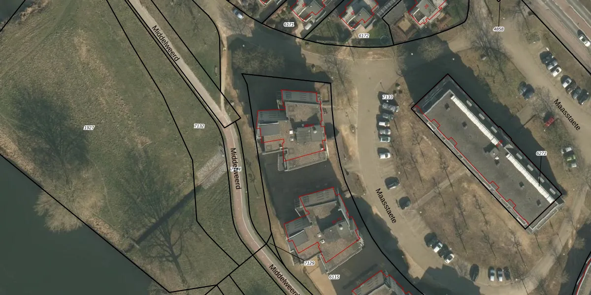 Het perceel waarop Maasstaete 59 staat heeft een oppervlakte van 3950 m². Dit is een zeer groot perceel. De perceeloppervlakte wordt geregistreerd door het Kadaster. Gedetailleerde informatie over de maten van dit perceel kunt u vinden in het rapport Kadastrale kaart met maatvoering van Maasstaete 59.