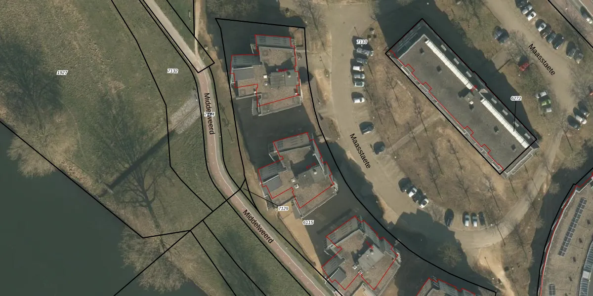 Het perceel waarop Maasstaete 69 staat heeft een oppervlakte van 3950 m². Dit is een zeer groot perceel. De perceeloppervlakte wordt geregistreerd door het Kadaster. Gedetailleerde informatie over de maten van dit perceel kunt u vinden in het rapport Kadastrale kaart met maatvoering van Maasstaete 69.