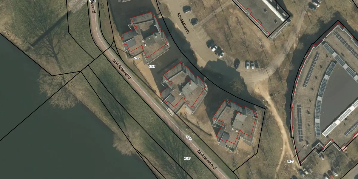 Het perceel waarop Maasstaete 75 staat heeft een oppervlakte van 3950 m². Dit is een zeer groot perceel. De perceeloppervlakte wordt geregistreerd door het Kadaster. Gedetailleerde informatie over de maten van dit perceel kunt u vinden in het rapport Kadastrale kaart met maatvoering van Maasstaete 75.