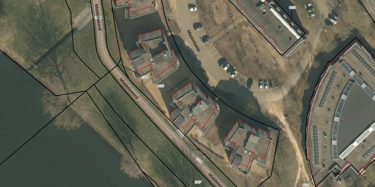 Het perceel waarop Maasstaete 82 staat heeft een oppervlakte van 3950 m². Dit is een zeer groot perceel. De perceeloppervlakte wordt geregistreerd door het Kadaster. Gedetailleerde informatie over de maten van dit perceel kunt u vinden in het rapport Kadastrale kaart met maatvoering van Maasstaete 82.